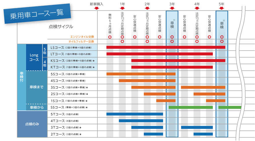 *通常価格は、コースに含まれる定期点検とオイル交換を当店でそのつど受けた場合の合計価格です。