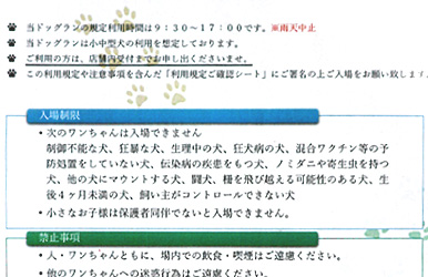 店舗受付にて、ドッグランのご利用をお申し込みください。